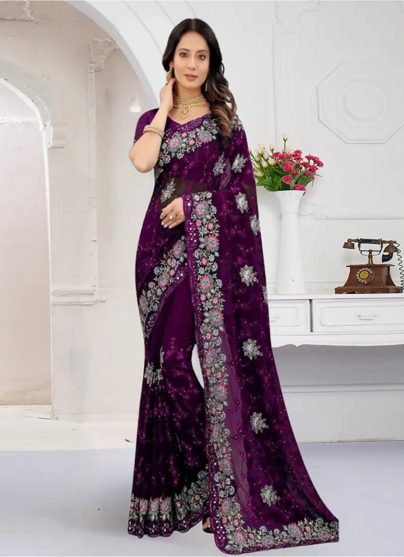 ইন্ডিয়ান প্রিমিয়াম জর্জেট এমব্রয়ডারি এবং এক্সক্লুসিভ স্টোন করা শাড়ি