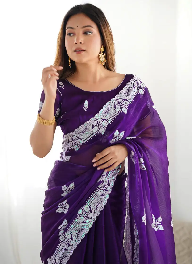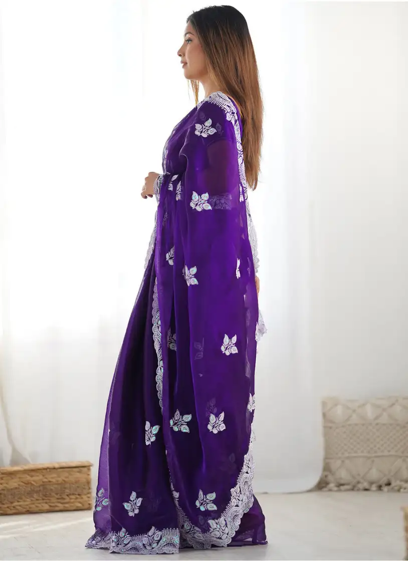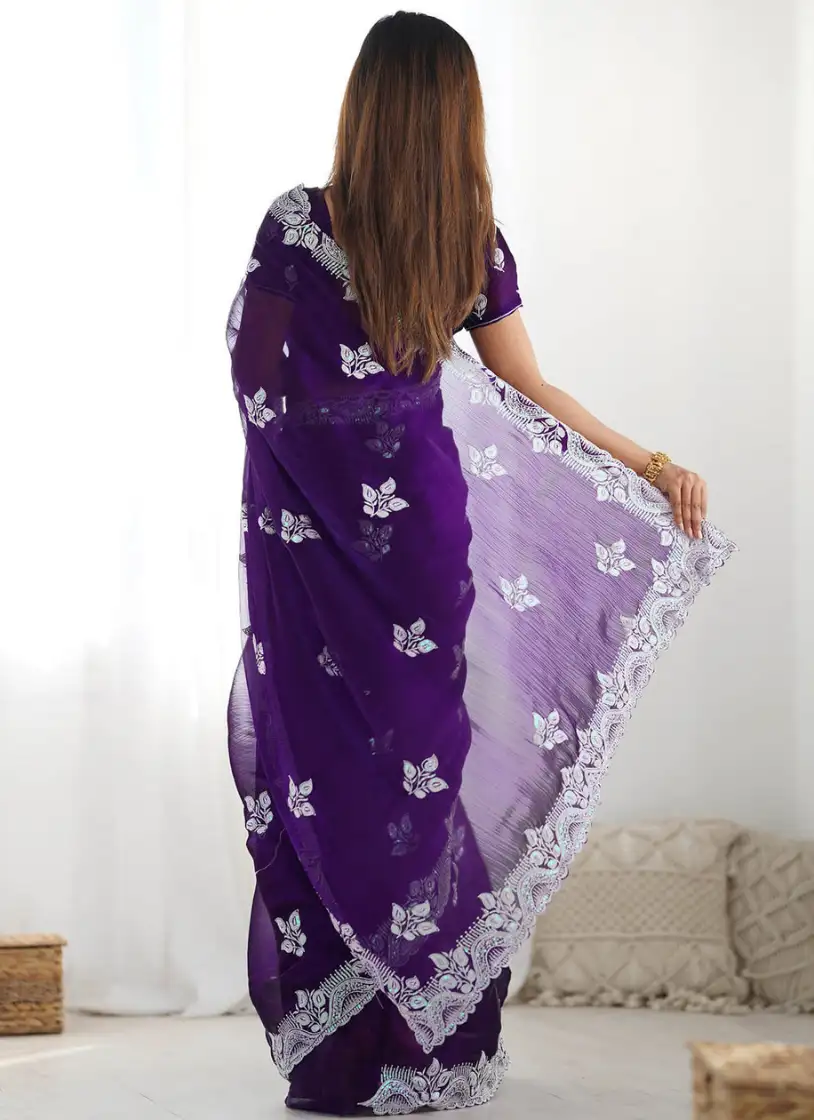 এক্সক্লুসিভ ইন্ডিয়ান ওয়েটলেস জর্জেট এমব্রয়ডারি করা পার্টি শাড়ি